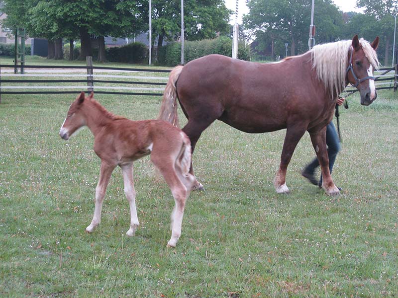 Am 15. März 2018 nachts um 1 Uhr kam unser Stutfohlen „Franzi vom Lenzenhof“ zur Welt, mit 10 Tagen Verspätung aber gesund und ohne Komplikationen. Es ist das zweite Fohlen unserer Rheinisch Deutschen Kaltblutstute „Alyessa“. Diesmal war sie tragend von Hengst „Franzl“. Vorstellen möchten wir Stute mit Fohlen am 26. Juni zur Kreispferdeschau bei der Familie Höfkes in Kempen, Unterweiden.