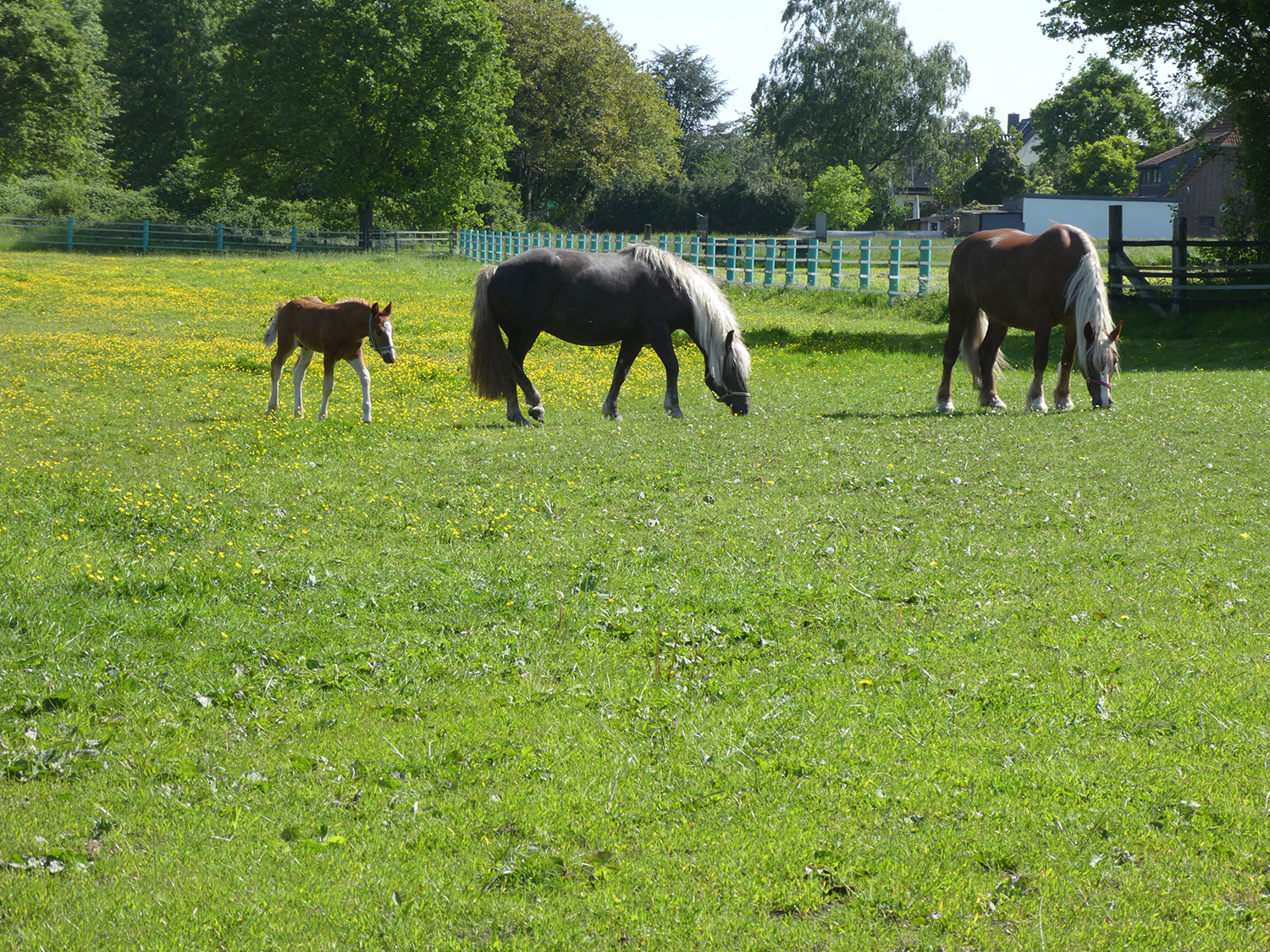Unser selbstbewußtes Schwarzwälder Hengstfohlen „Draco Star vom Lenzenhof“ geboren am 21.04.2023 von „Drachenfels“ aus der „Dorin“präsentierte sich auf der Fohlenschau in Willich auf der Reitanlage Hülsmann im Juni ’23 und wurde silberprämiert.Schwarzwälderstute „Ruby vom Lenzenhof“ von „Rubinrot“ aus der „Dorin“ ist jetzt ebenfalls zweijährig. Sie ist sehr umgänglich,sieht regelmäßig den Hufschmied, läuft zur Zeit mit den anderen Stuten Tag und Nacht auf der Weide mit Schutz- und Schattenhütte.